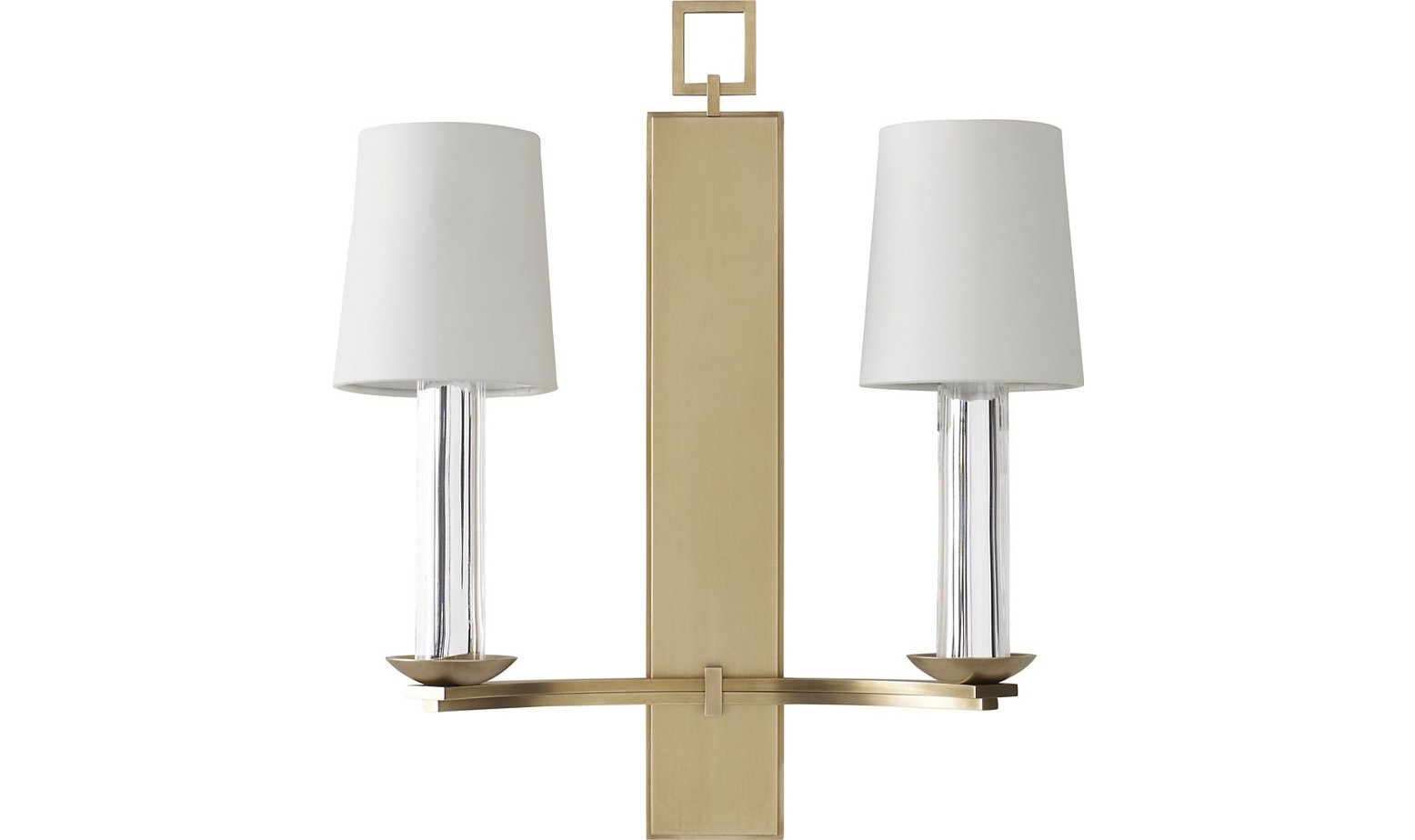 Бра Trocadero от премиального американского бренда Baker. Дизайнер Thomas Pheasant. Основание латунные, цвет светлой латуни. Цоколь украшен хрусталем цилиндрической формы, установленным на латунные подставки. Абажуры в форме усеченного конуса, с отделкой тканью песчаного цвета. Работает от двух лампочек максимальной мощностью GU9.