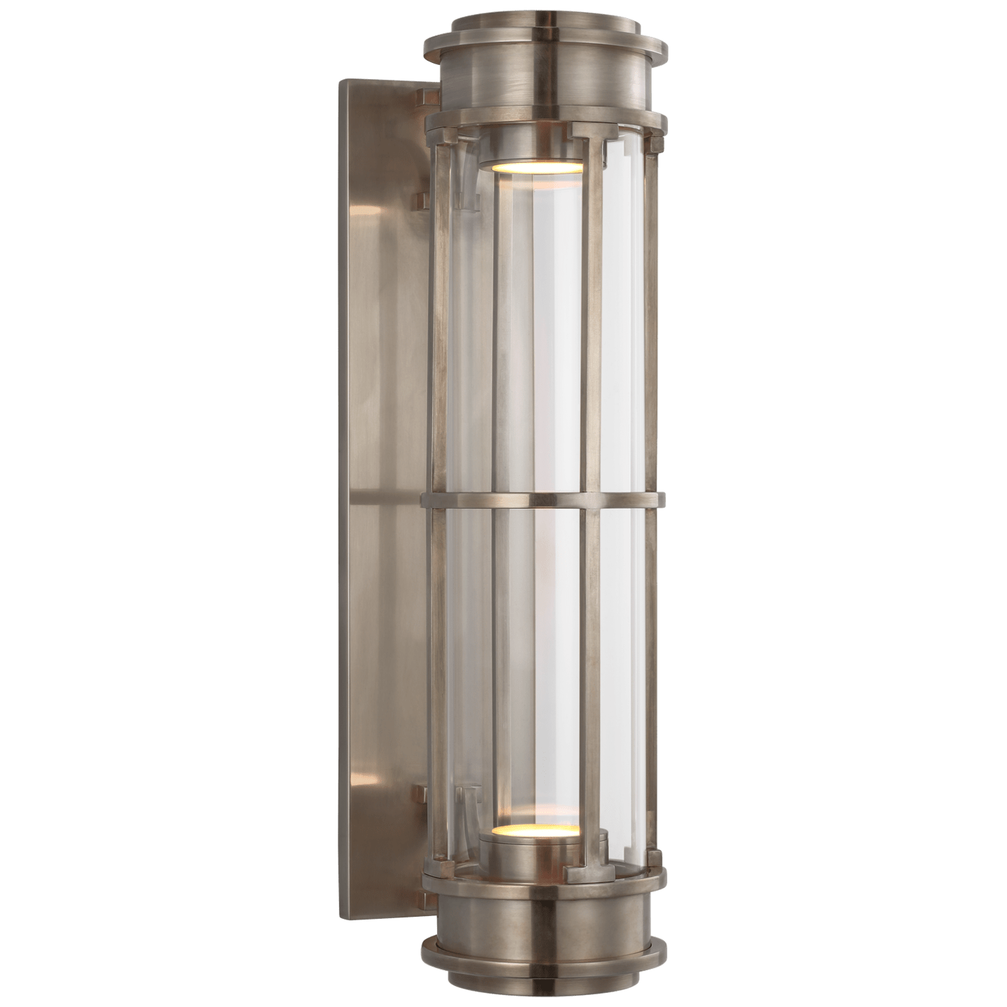 Настенный бра Gracie Sconce CHD 2486AN-CG от американских дизайнеров Chapman и Myers выполнен в виде цилиндрической колбы из стекла, заключенной в переплет из латунных колец и дуг, покрытых никелем. Благодаря необычному дизайну светильник несомненно привлечет восхищенные взгляды ваших гостей.