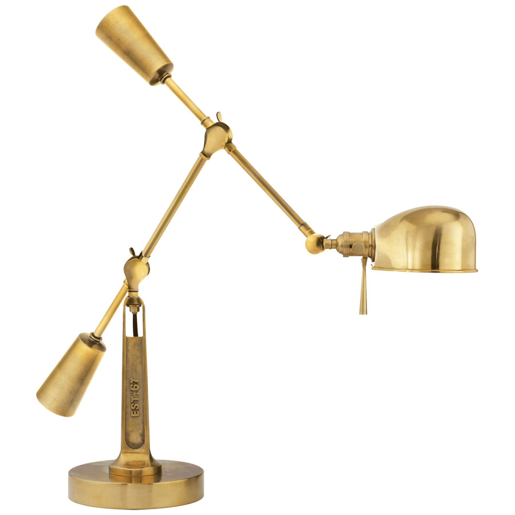 Культовая настольная рабочая лампа RL ’67 Boom Arm Desk Lamp будет прекрасным завершением вашего рабочего пространства в стиле американской классики. Литое основание лампы и сам корпус выполнены из латуни высшей марки. Высота и вылет светильника регулируются.