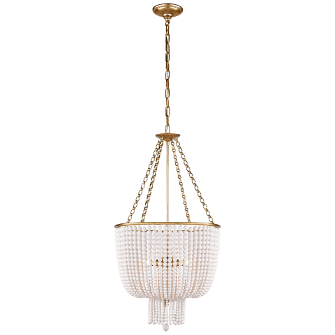 Люстра AERIN Jacqueline Chandelier средних размеров выполнена из состаренной латуни и прозрачного хрусталя. Благодаря регулировке и универсальному дизайну по высоте этот светильник прекрасно подойдет для помещений самых разных размеров и назначения