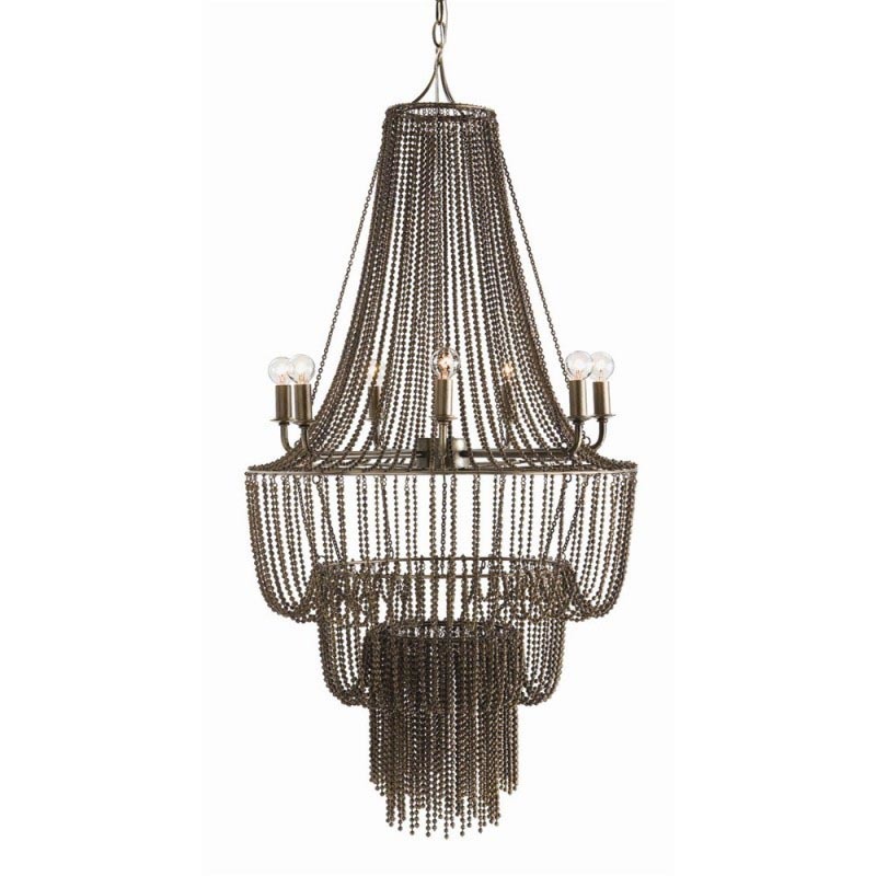 Люстра Allan Mizrahi CHAIN942 MAXIM The «Maxim», iron beaded chandelier features tiny oxidized iron beaded chain swags draped over iron hoops to create an impressive metalwork design in an antique brass finish. A stunning focal point that’s sure to impress any guest. Placed in large open spaces such as foyers, dining rooms, or modern covered patios. Large enough for commercial establishments. The warm, inviting ambiance of any space can always be filled with the enchanting beauty of a stylish chandelier. Having created custom chandeliers for over three decades, we specialize in bringing light