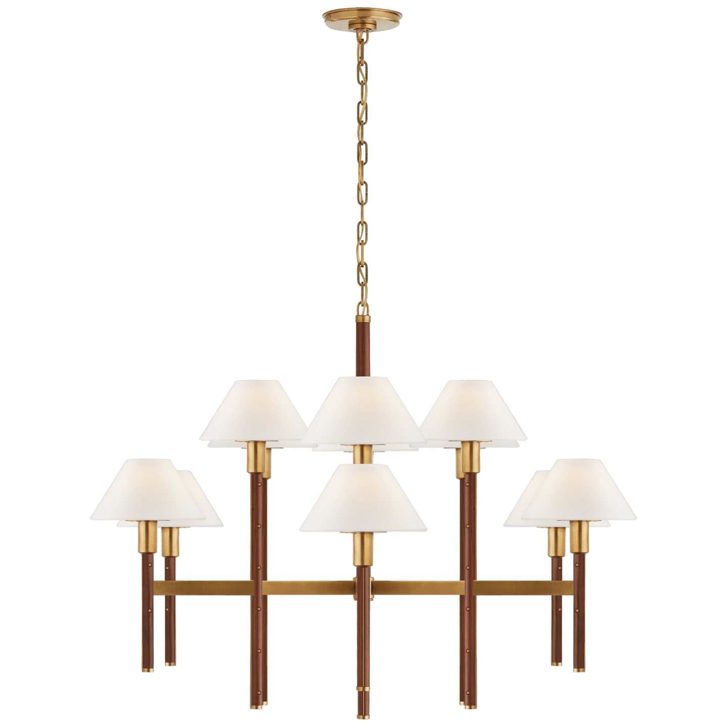 Необычное сочетание дерева и латуни в большой люстре в Radford от Ralph Lauren еще раз напоминает нам о том, что натуральные материалы всегда актуальны в создании премиальных интерьеров.