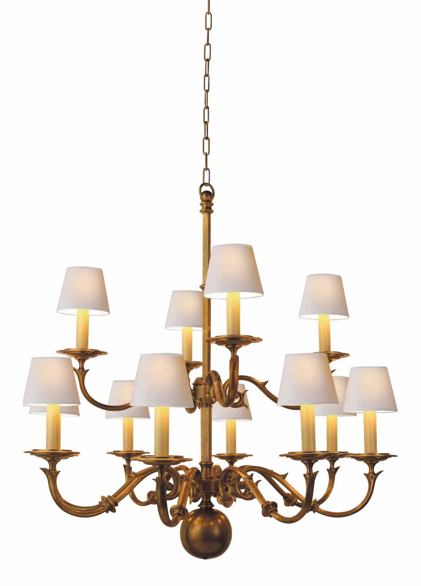 Люстра коллекции Chart House американского бренда Visual Comfort просто создана для уюта спален и гостиных, достаточно яркая, но уютно прикрывающая свет тканевыми плафонами. Состаренная латунь с растительными мотивами, тканевые плафоны с мягким ненавязчивым светом подарят таинственную атмосферу вашему интерьеру.