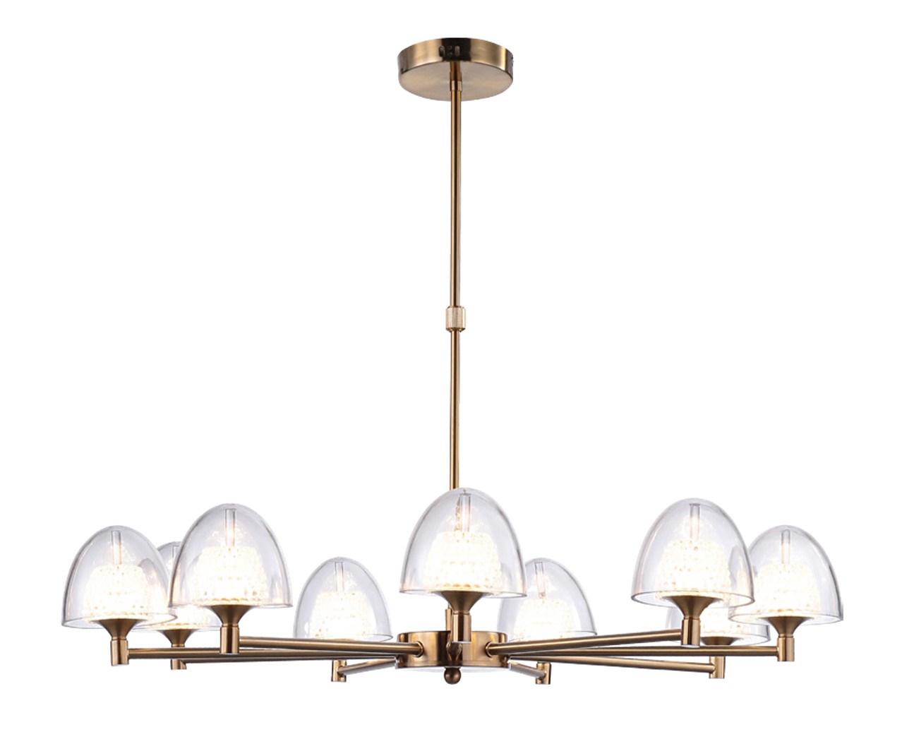Простой и элегантный дизайнерский светильник цвета полированной латуни со стеклянными плафонами в виде полусфер отлично дополнит интерьер в стиле постмодерна