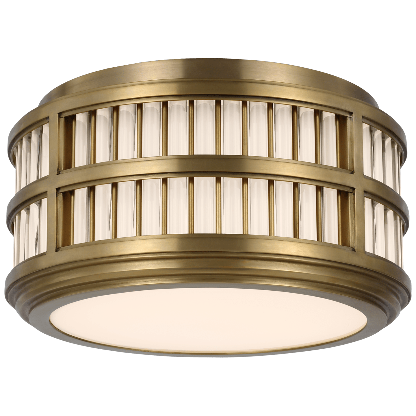 Потолочный светильник VISUAL COMFORT Perren 12″ Flush Mount RALPH LAUREN RL 4720NB в виде барабана со стеклянными экранами прекрасно будет смотреться во всех помещениях небольшого метража начиная от коридора и заканчивая ванной комнатой. Доступен для заказа в цветах AS, BZ, HAB, PN