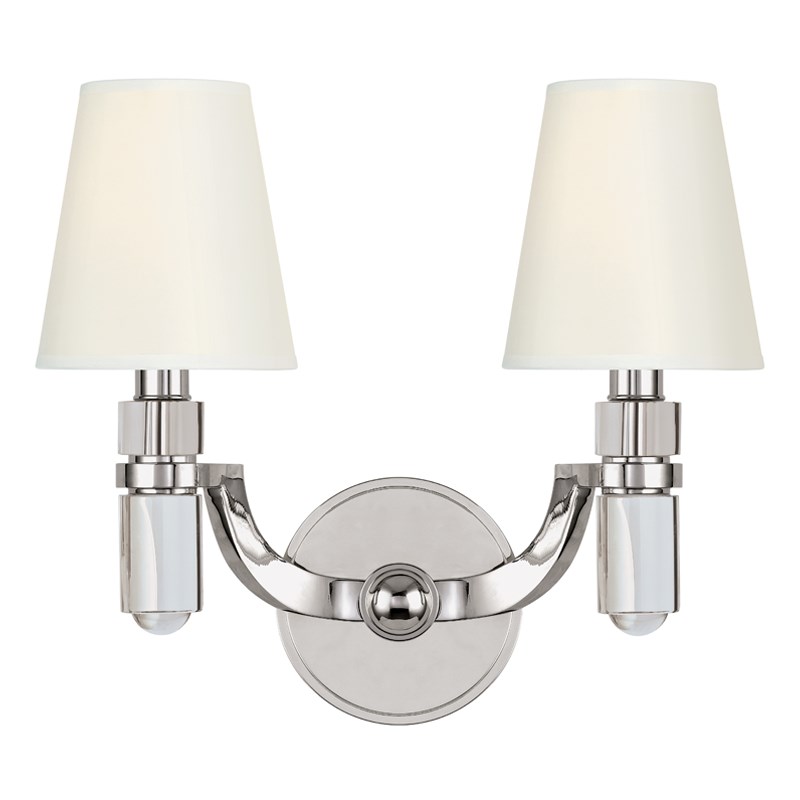 Настенный светильник коллекции Hudson Valley Dayton с корпусом латуни, покрытой состаренным никелем и хрусталя. Плавные формы венчает тканевый накрахмаленный абажур с пропиткой для поддержки его конусовидной формы. Благодаря лаконичному и в то же время элегантному дизайну это бра может применяться в широком диапазоне стилей от модерна до классики и шебби-шик