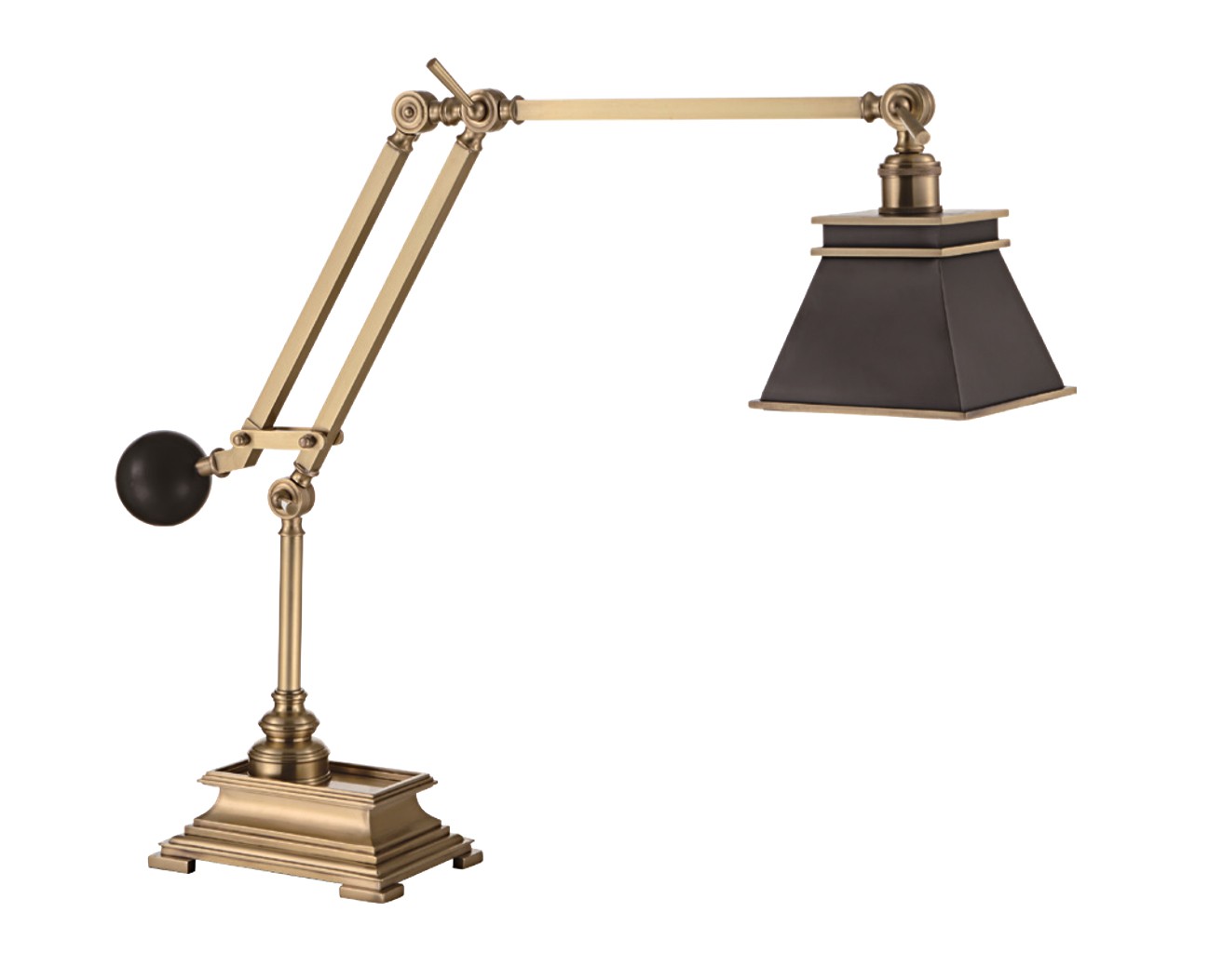 Латунная лампа Visual Comfort в стимпанковом стиле железных дорог 19 го века. Абажур из черненой латуни и мраморный шар-противовес напоминают железнодорожный семафор. Один экземпляр этой нашей лампы находится в музее старинной техники в Москве