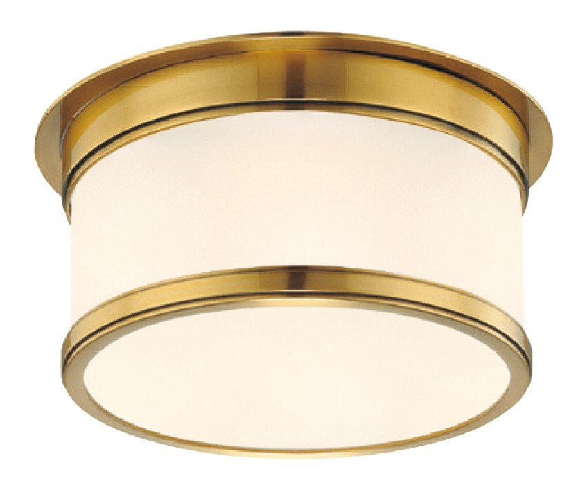 Накладной потолочный светильник Hudson Valley 712AGB из состаренной латуни и матового стекла круглой формы прекрасно подойдет для небольших помещений, гостевых санузлов, ванных комнат, коридоров