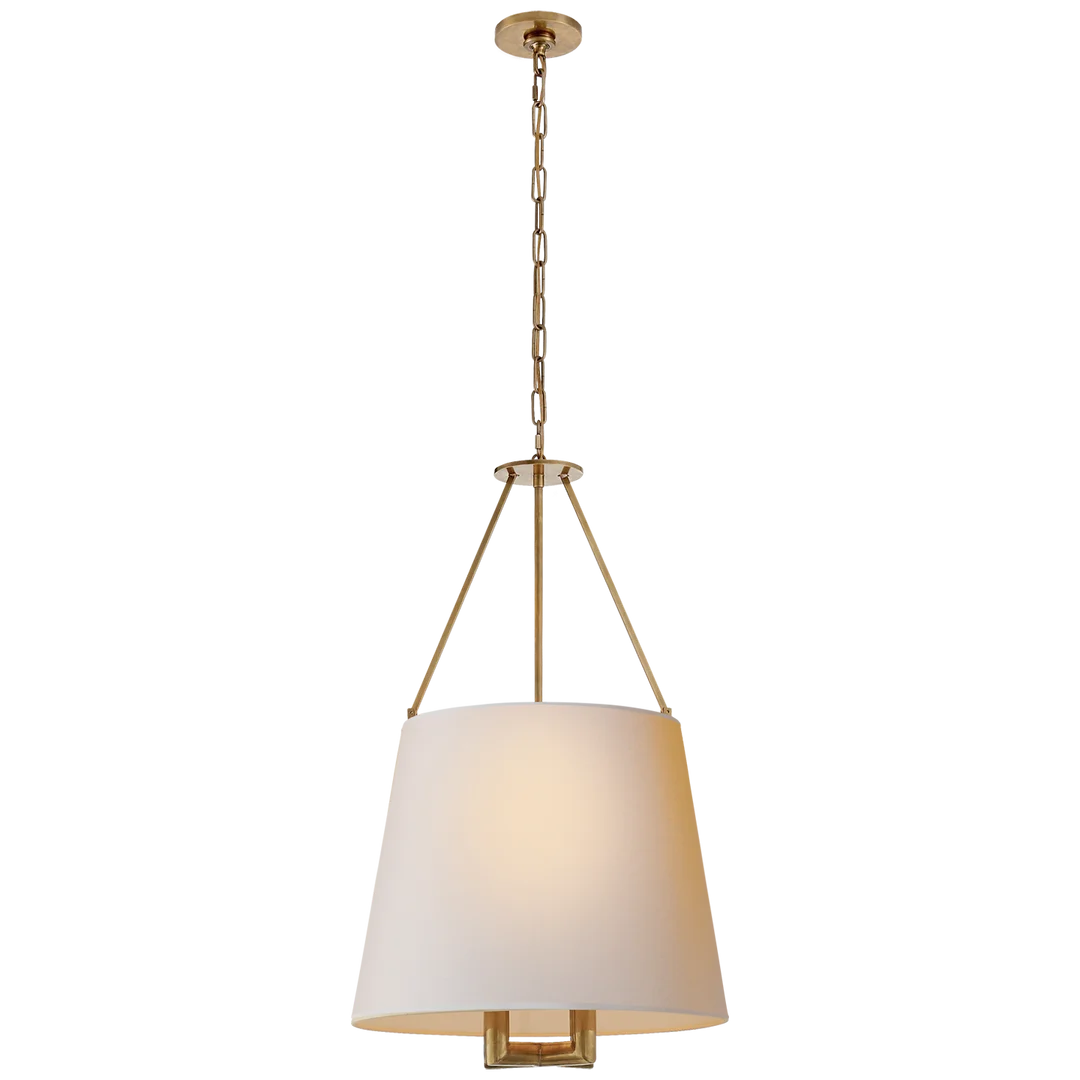 Подвесной потолочный светильник Dalston Hanging Shade с финишной отделкой вручную брашированная латунь и тканевым абажуром.