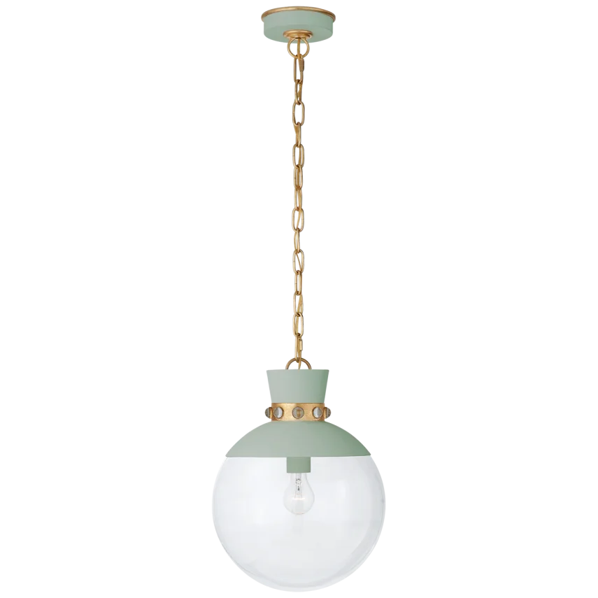 Lucia Medium Pendant in Celedon and Gild with Clear Glass