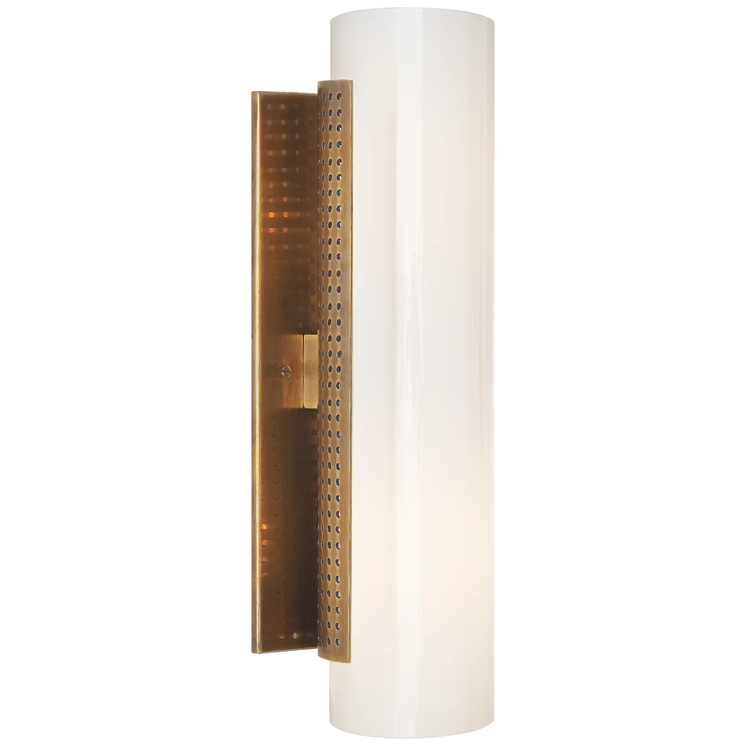 Precision Cylinder Sconce in Antique-Burnished Brass with White Glass