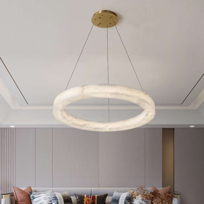 Светильник в виде кольца из натурального алебастра диаметром 60 сантиметров