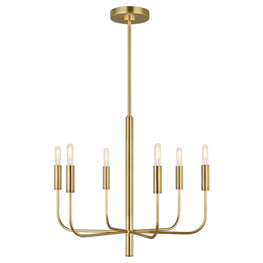 The Brianna Small Chandelier, which is part of the ED by Ellen DeGeneres lighting collection, is a charming and stylish lighting fixture that can be a great addition to various spaces in your home. Here are the key features and specifications for the ED Ellen DeGeneres EC1006 chandelier: **Design:** — The chandelier is designed with a modern farmhouse aesthetic, combining rustic and industrial elements. — It features six clear glass globes that are arranged in a tiered fashion, which allows for an elegant cascade of light. — The metal frame has a distressed antique brass finish that adds to t